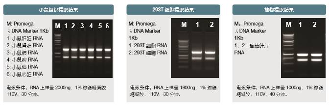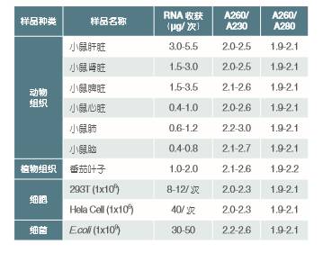 ● 适用于多种样本:可提取多种动物组织,植物组织,培养细 胞,细菌,等样本的RNA。