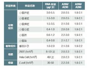 ★ 适用于多种样本:可提取多种动物组织,植物组织,培养细 胞,细菌,等样本的RNA。