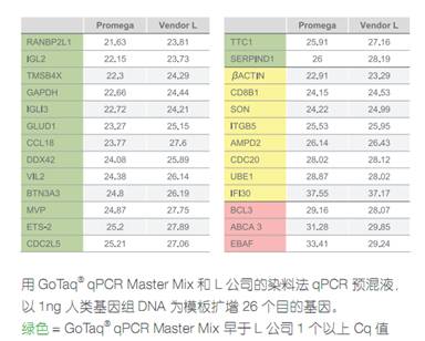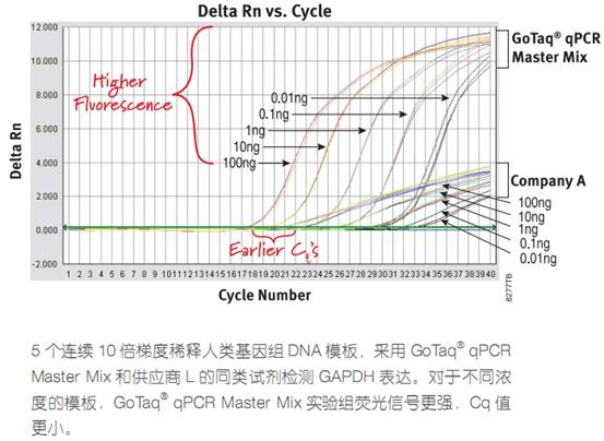GoTaq® qPCR Master Mix是用于实时荧光定量PCR的即用型2X预混母液。GoTaq® qPCR Master Mix 结合了GoTaq®热启动聚合酶、优化的缓冲液及专利的荧光染料( BRYT Green® Dye ),更早获得Cq值,检测范围更宽,从而有效提高实时定量PCR 的可靠性、重复性和灵敏度。